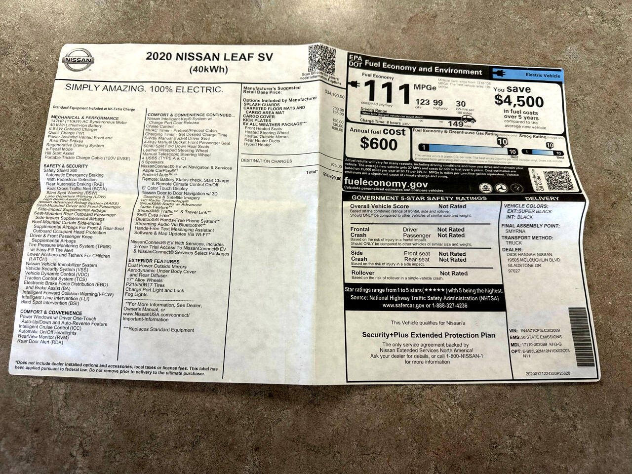Hop into the future with this sleek Black 2020 Nissan Leaf! This electric wonder is powered by a 110kW AC Synchronous Motor with a Single Speed Reducer, providing a smooth and efficient ride every time. With a front-wheel-drive and regenerative 4-wheel disc brakes, this car is not only eco-friendly but also a blast to drive. The Lithium-Ion Traction Battery allows for quick charging times, so you can spend less time waiting and more time cruising around town on the 17" Alloy wheels.
